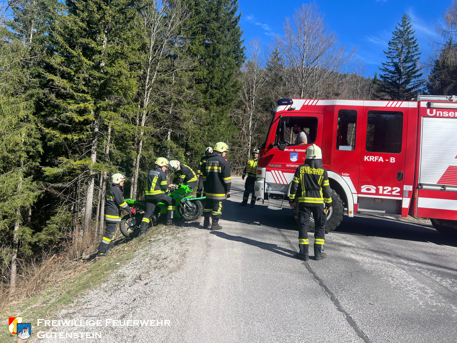 Am Ostersonntag, dem 5. April 2026, wurde die Freiwillige Feuerwehr Gutenstein um 14:55 Uhr zu einer Motorradbergung ins Klostertal alarmiert.