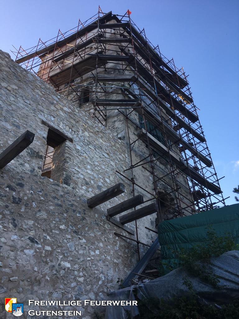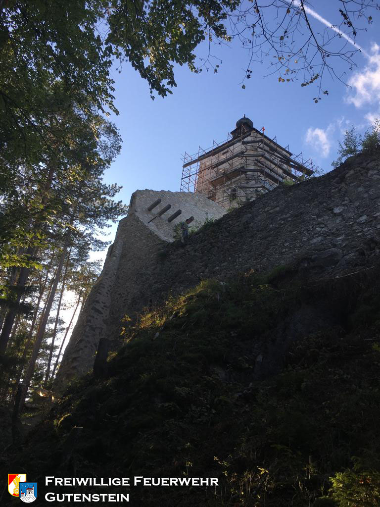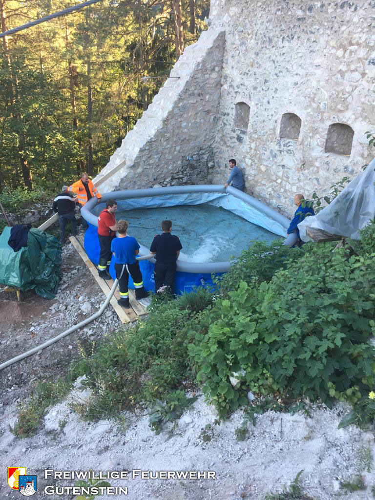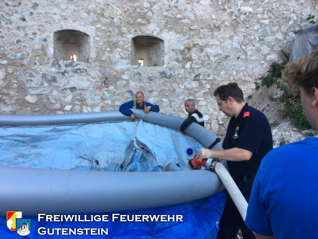 Am 26.09.2019 wurde die FF Gutenstein beauftragt die Wasserbecken, mit gesamt ca. 20.000 Liter Inhalt, bei der Ruine zu befüllen, um den Wiederaufbau der Ruine zu gewährleisten.