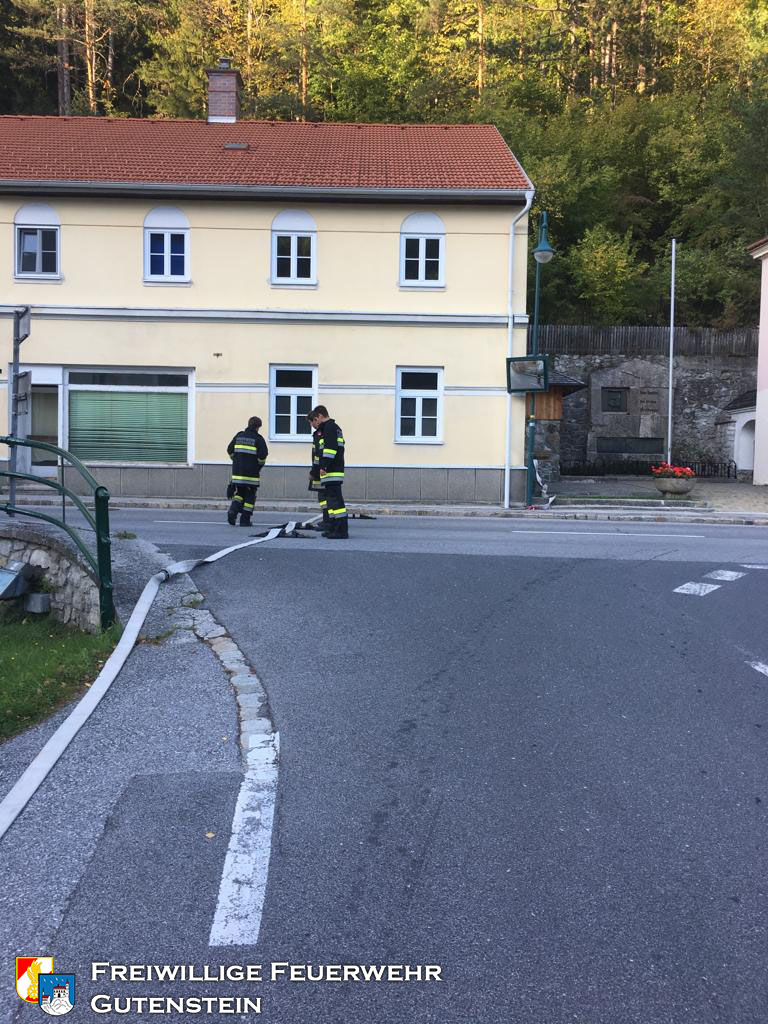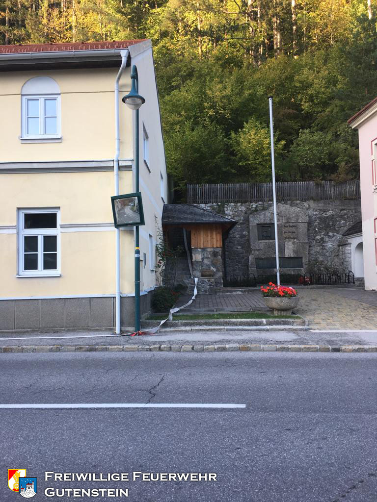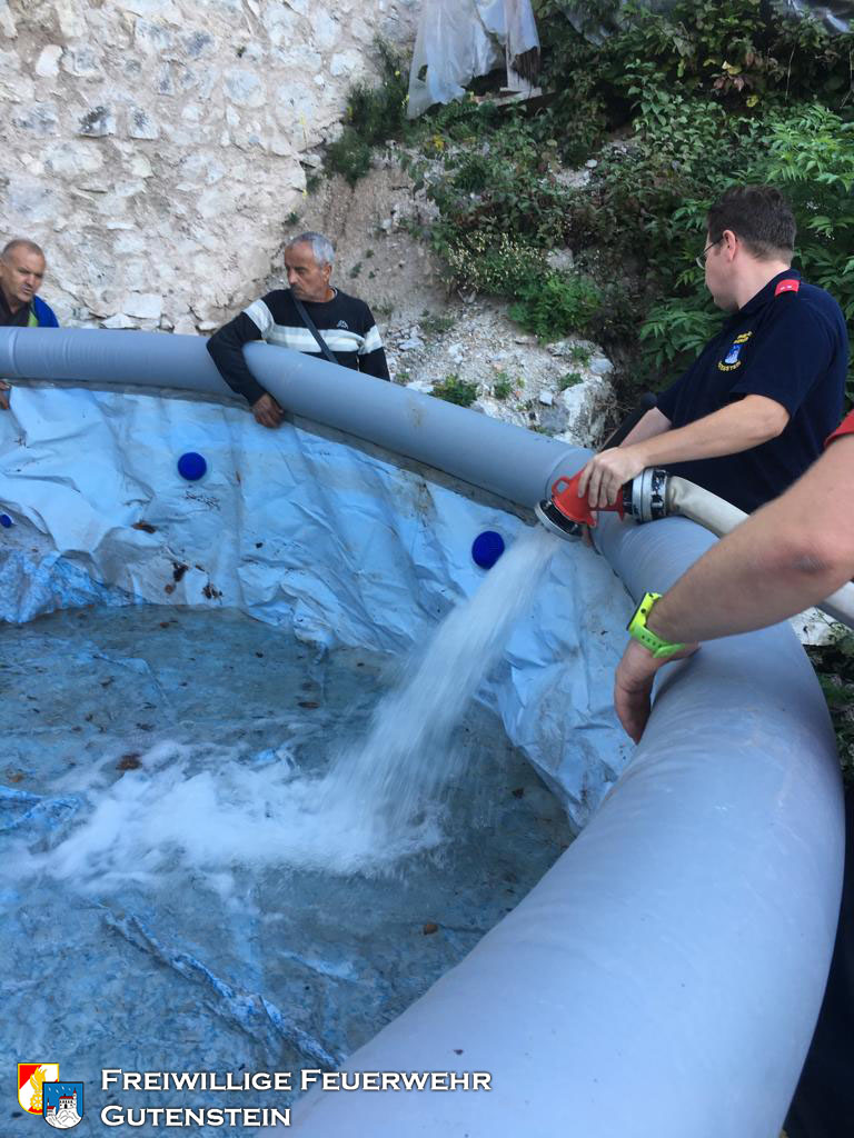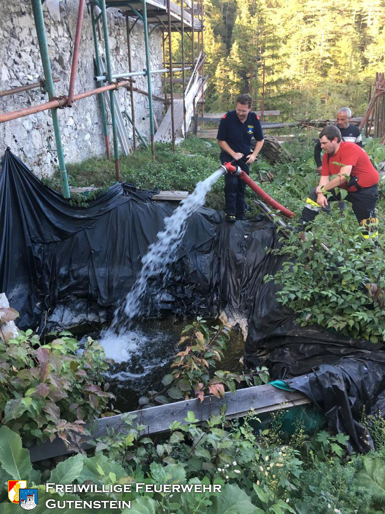 Am 26.09.2019 wurde die FF Gutenstein beauftragt die Wasserbecken, mit gesamt ca. 20.000 Liter Inhalt, bei der Ruine zu befüllen, um den Wiederaufbau der Ruine zu gewährleisten.