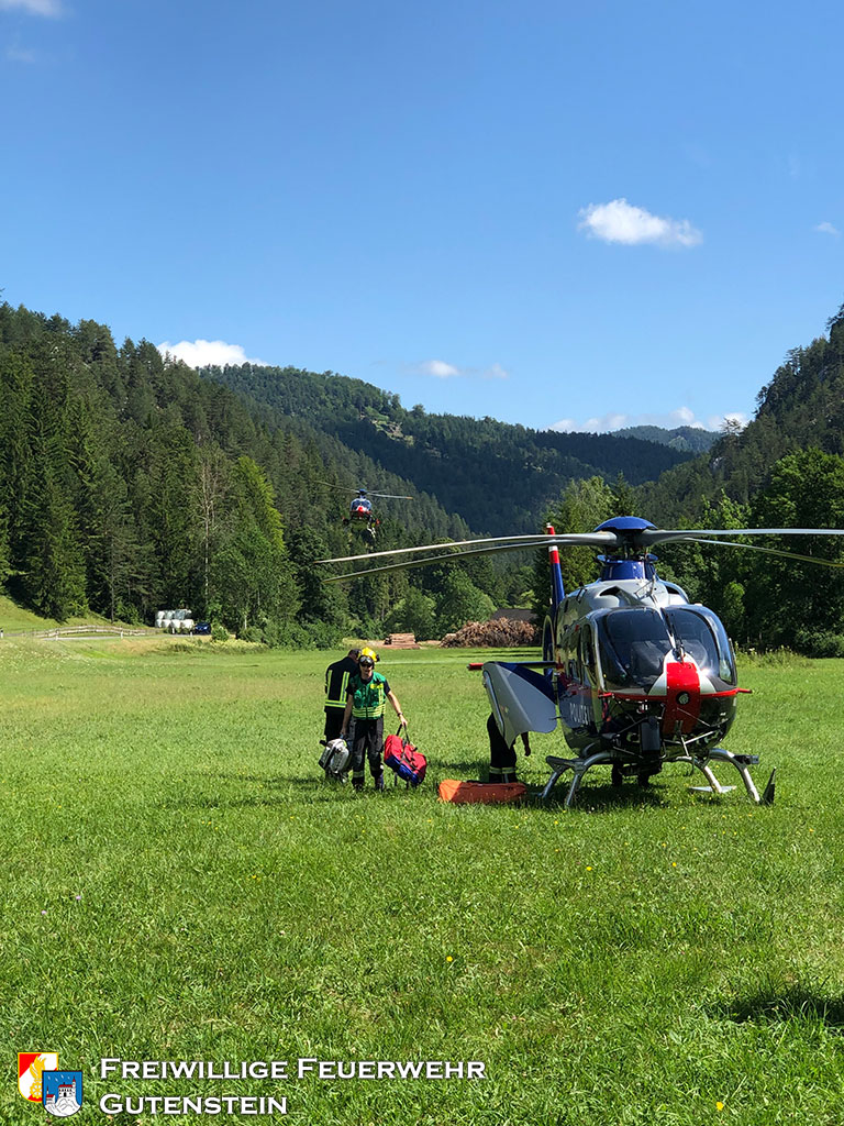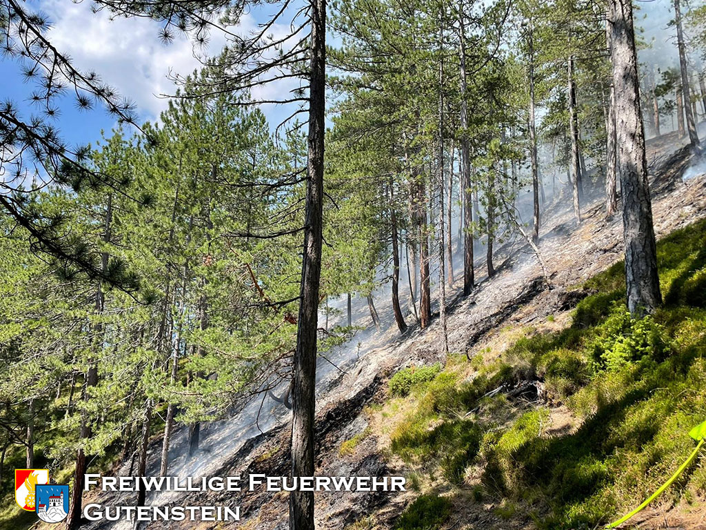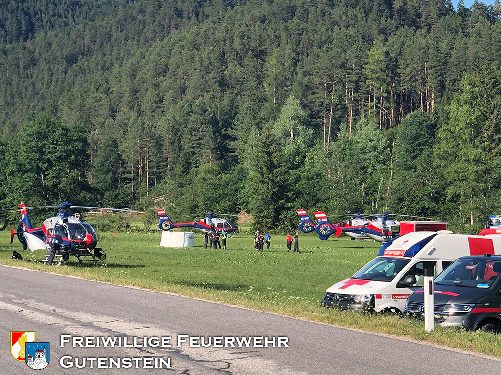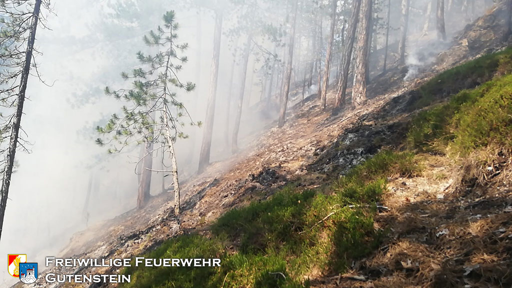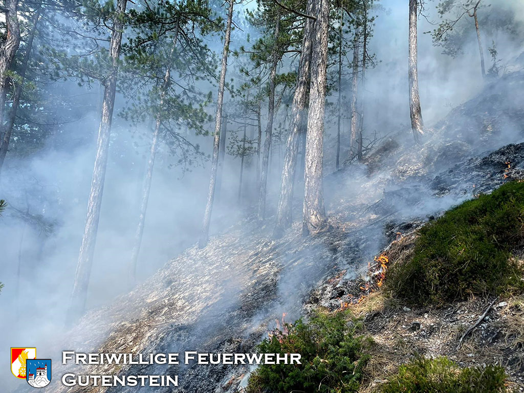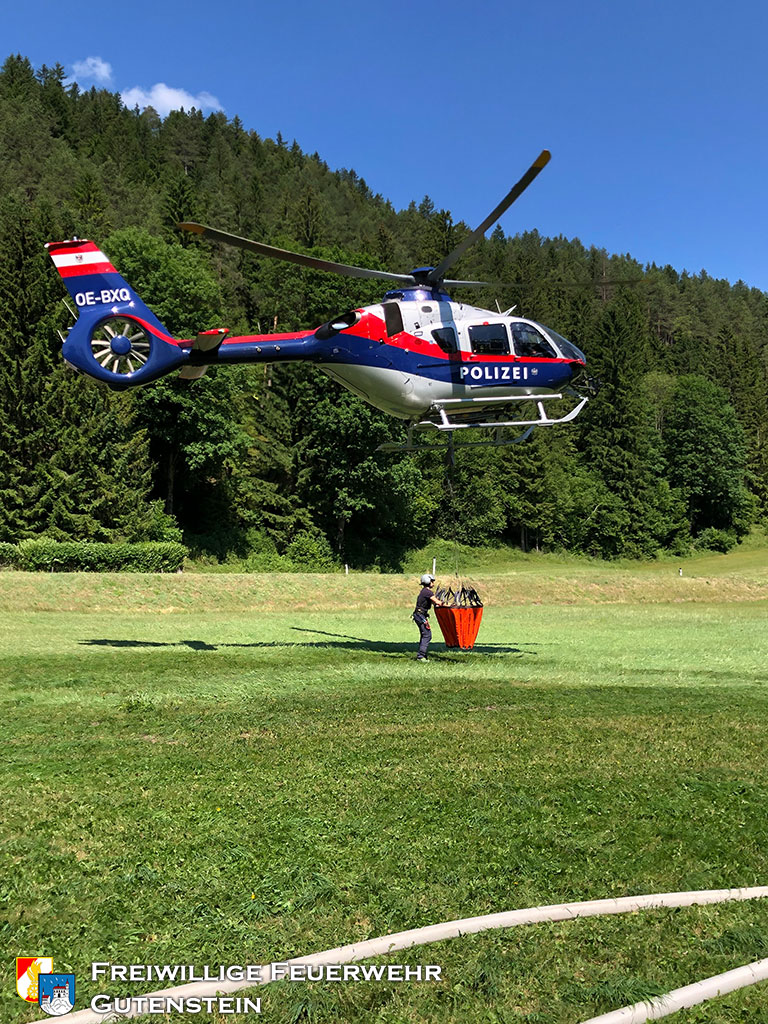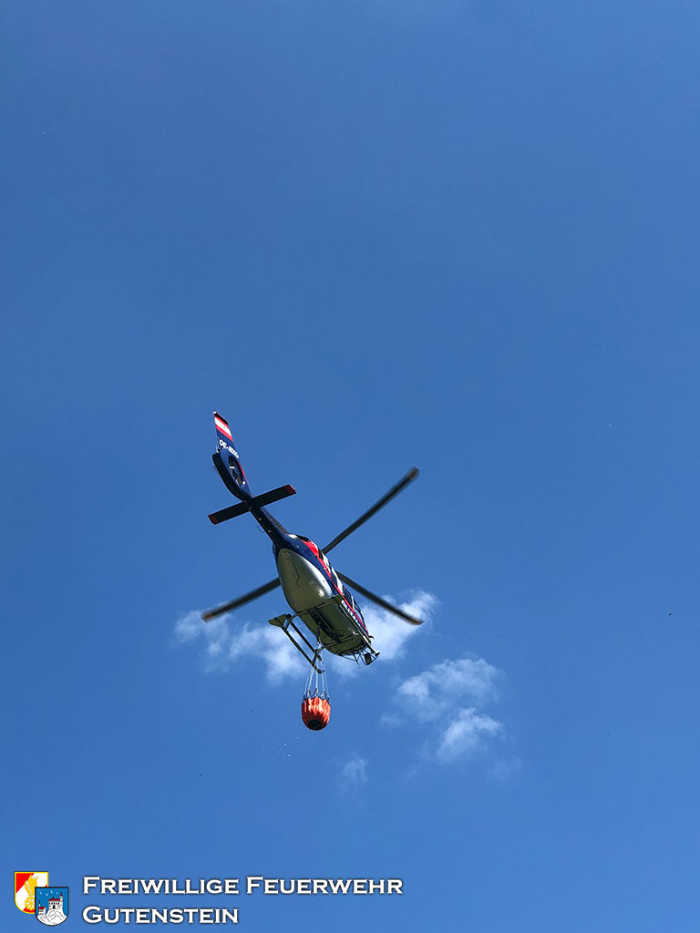 Um ca. 12 Uhr traf der Flugdienst mit 4 Hubschrauber des BMI und 1 Hubschrauber des Bundesheers am Einsatzort ein, zu diesem Zeitpunkt standen schon ca. 3-4 ha Wald in Flammen.