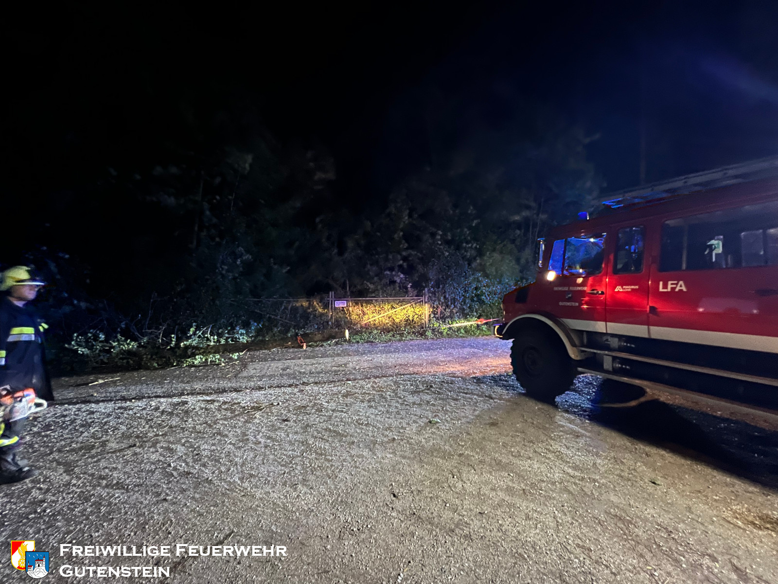 Am 04. Oktober 2025 wurde die FF Gutenstein um 23:46 Uhr zu einem Technischen Einsatz ins Blättertal alarmiert. Ein Baum blockierte die Fahrbahn und musste entfernt werden.