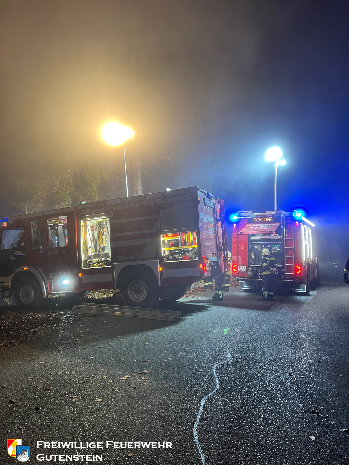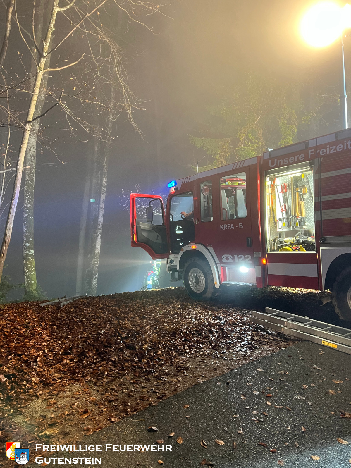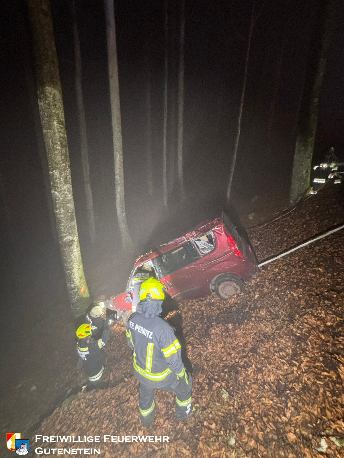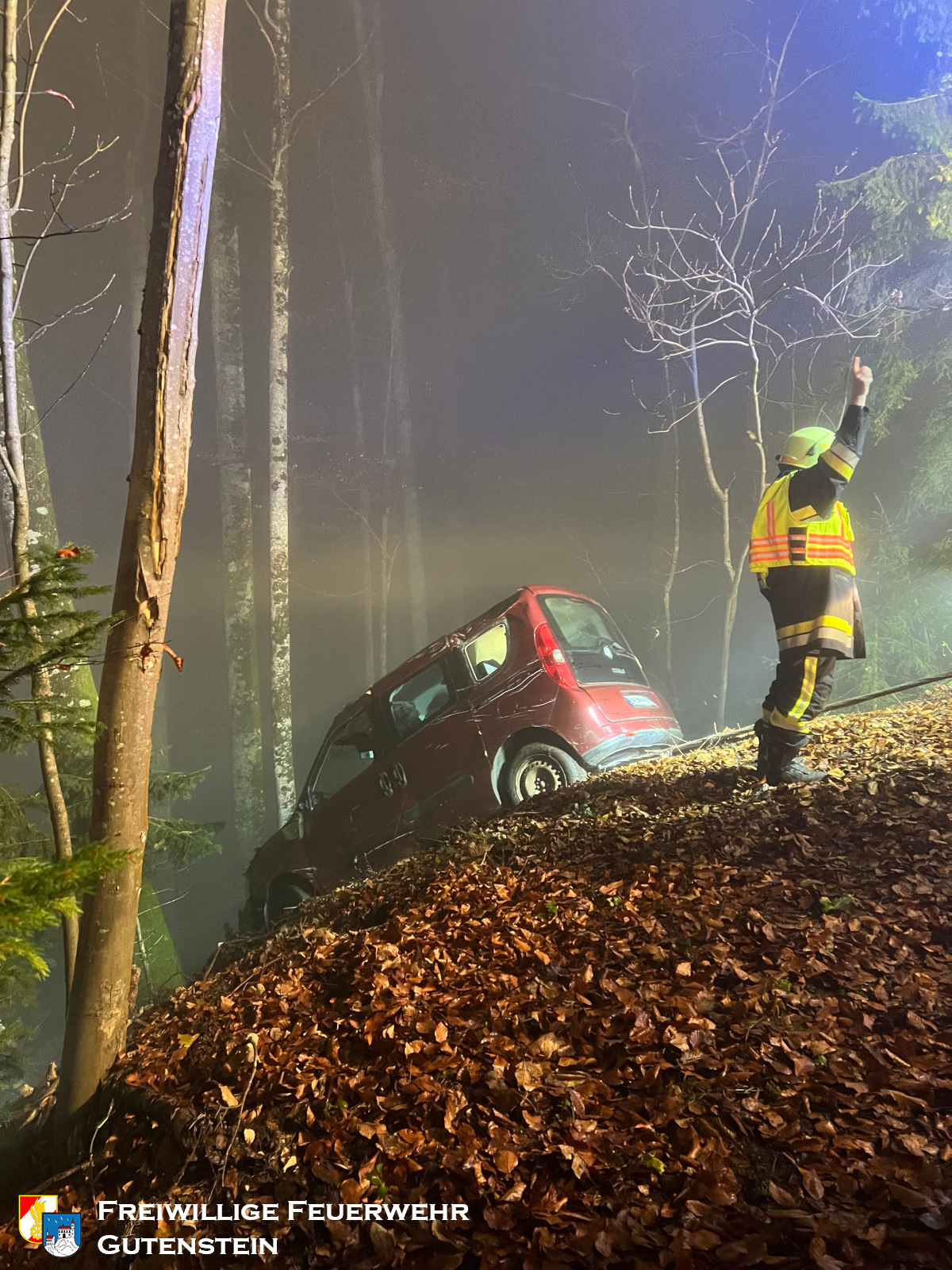 Am 16. November 2025 um 17:55 Uhr wurde die Freiwillige Feuerwehr Gutenstein zu einem Verkehrsunfall mit Menschenrettung am Mariahilfberg alarmiert. Ein Fahrzeug war aus bisher unbekannter Ursache rund 20 Meter über eine Böschung abgestürzt, wobei sich eine Person im Fahrzeug befand.