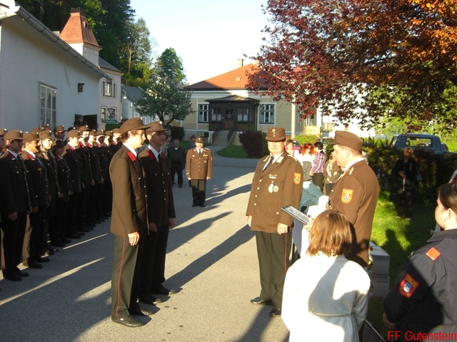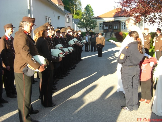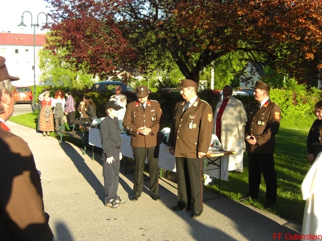 Diese wurde am 07.05.2011 um 18:00 Uhr abgehalten. Nach der Zusammenkunft im Feuerwehrhaus marschierten die Mitglieder der FF Gutenstein mit Begleitung der Ortsmusikkapelle Gutenstein zur Pfarrkirche. Die Messe wurde von Herrn Pater Klemens M. Feiertag OSM gelesen. Nach dem Auszug aus der Kirche wurden auf dem Pfarrplatz die neuen Einsatzhelme für Atemschutzgeräteträger gesegnet, die Ehrungen und Angelobungen vorgenommen.