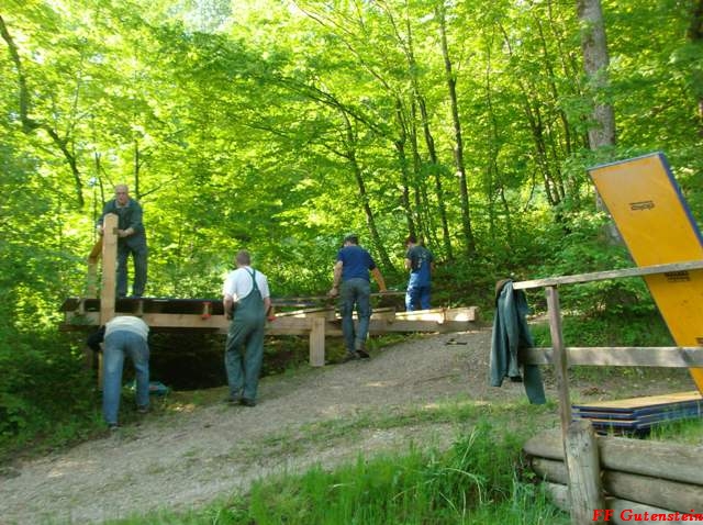 Nachdem die Vorbereitungsarbeiten für die Wände und der Elektroinstallation abgeschlossen waren, wurde am 14. 05. 2011 der neue Pfostenboden verlegt. Begonnen haben die Mitglieder der Freiwilligen Feuerwehr Gutenstein um 07:00 Uhr.