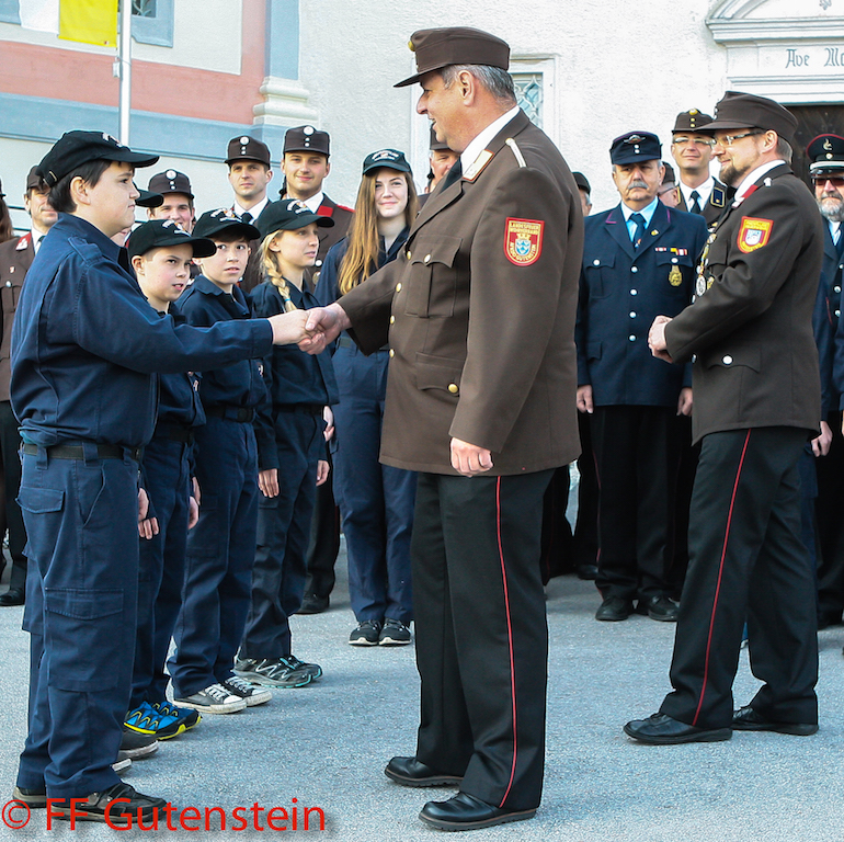 JFM Moser Valentin, JFM Wolf Maximilian, JFM Kropf Kevin, JFM Hoogenhuizen Jana und JFM Pferscher Lorenz wurden in der Feuerwehrjugend angelobt.;
