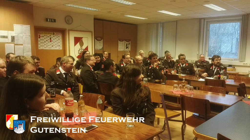 Den Abschluss bildete ein Buffet im Feuerwehrhaus. Aufgrund eines Einsatzes ebenfalls um 14.00 Uhr konnten einige Kameraden nicht an der Versammlung teilnehmen. Sie konnten sich jedoch im Feuerwehrhaus von der Kälte erwärmen und beim gemütlichen Teil der Versammlung dabei sein.