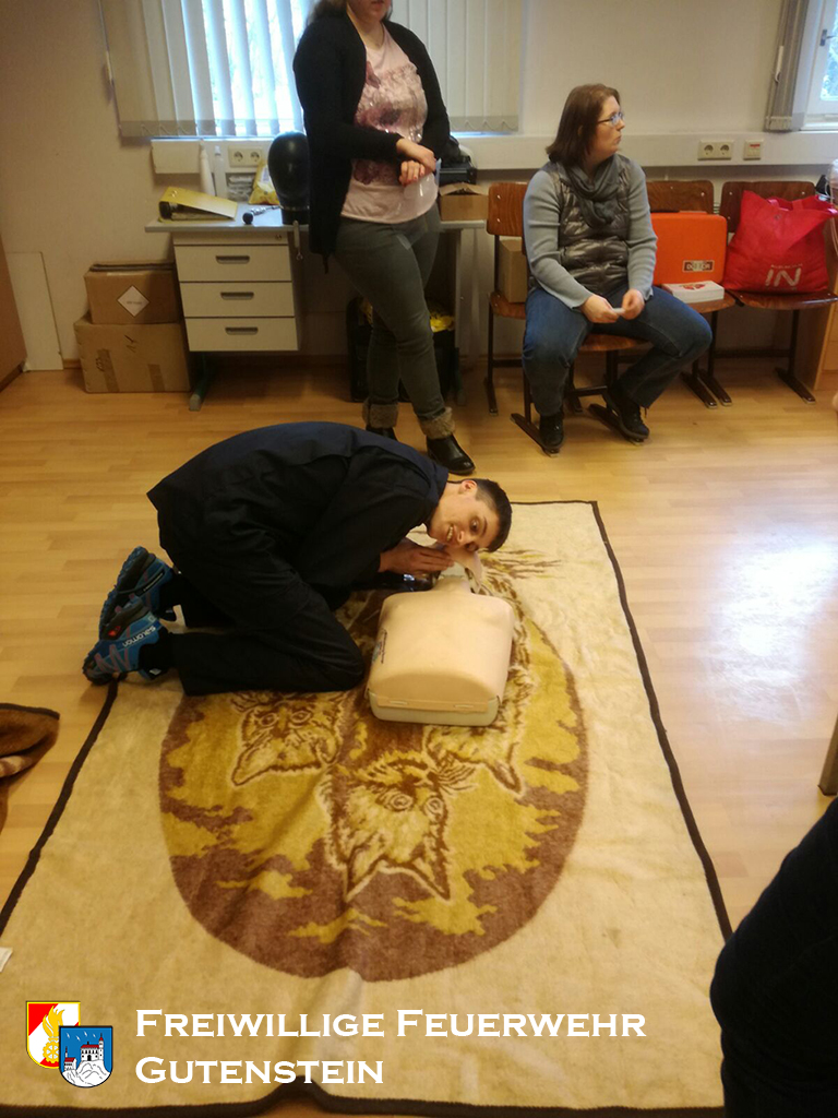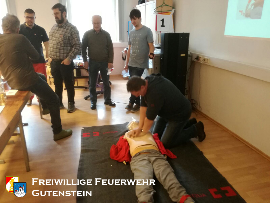 Für einige der Kameraden der FF Gutenstein wurde am 12.02.2017 der erste Erste Hilfe Kurs des Jahres im Feuerwehrhaus Gutenstein abgehalten. Dieser wurde von 13 Feuerwehrmitgliedern und 2 Gästen besucht.