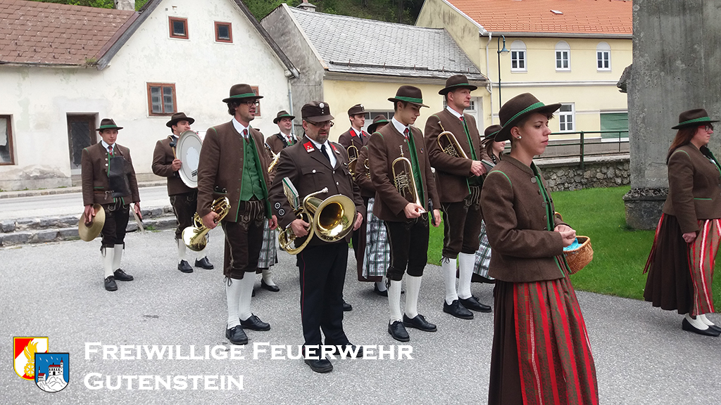 Um 09.45 Uhr marschierte die Feuerwehr gemeinsam mit der Ortskapelle Gutenstein vom Feuerwehrhaus zur Kirche. Nach der feierlichen Messe wurden anschließend die Angelobungen durchgeführt.