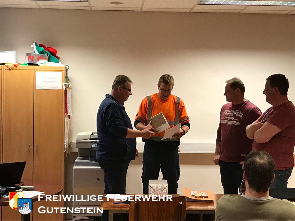 An diesem Dienstag wurde ein Mitglied der FFG verabschiedet. Oberfeuerwehrmann Gerhard Riegler verlässt nach 11-jährigem Dienst mit sämtlichen Schulungen und zahlreichen erfolgreich absolvierten Ausbildungen die Feuerwehr Gutenstein, da er aus privaten Gründen umzieht und bereits der Wehr seiner neuen Gemeinde beigetreten ist. Die Feuerwehr Gutenstein dankt ihm recht herzlich für seine Dienste und wünscht ihm viel Glück, Erfolg und Gut Wehr!