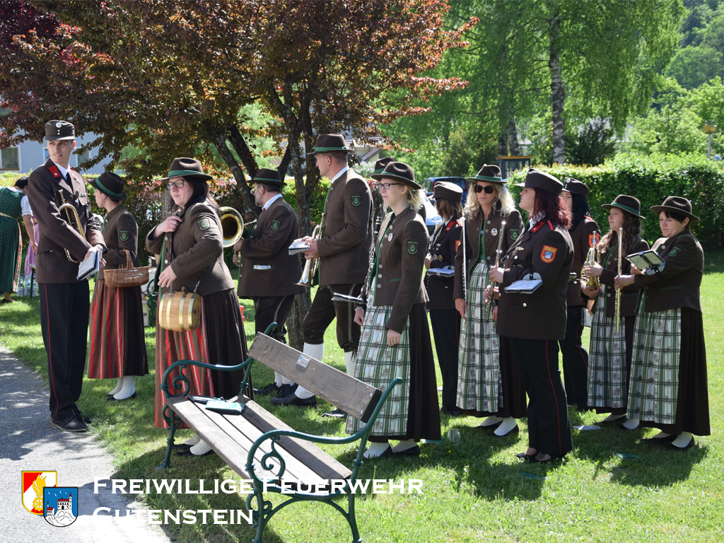 Um 09.45 Uhr marschiert die Feuerwehr gemeinsam mit der Ortskapelle Gutenstein vom Feuerwehrhaus zur Kirche.