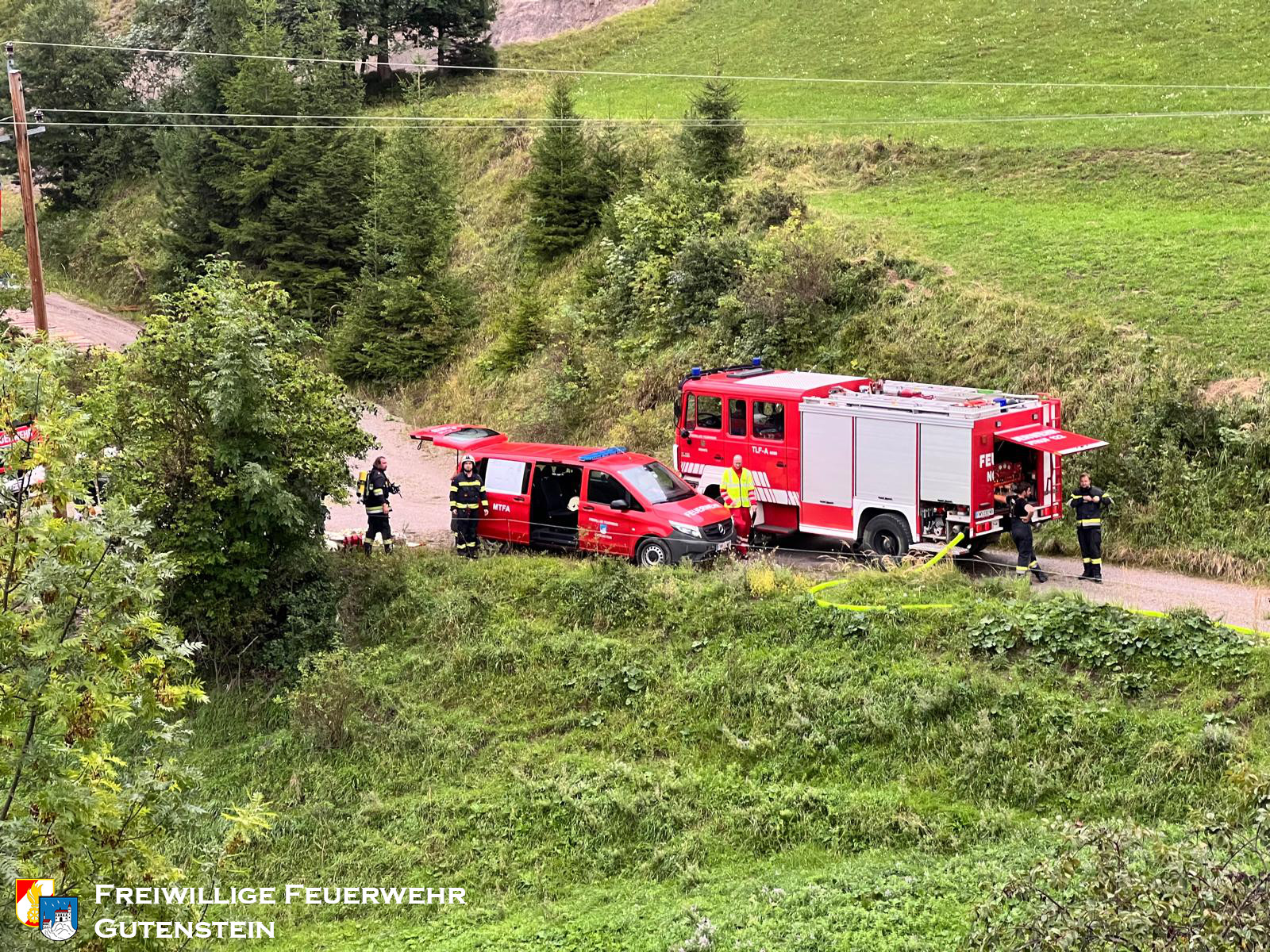 Parallel dazu stellten die Feuerwehren Pernitz, Rohr im Gebirge, Muggendorf und Thal die Löschwasserversorgung mittels Tanklöschfahrzeugen sicher und unterstützen bei einer weiteren Personensuche. Um genügend Wasser für die weitere Brandbekämpfung zur Verfügung zu haben, wurde zusätzlich eine Zubringleitung aus dem benachbarten Tal errichtet, die über mehrere Tragkraftspritzen betrieben wurde. So konnte in kürzester Zeit eine leistungsfähige und stabile Wasserversorgung aufgebaut werden.